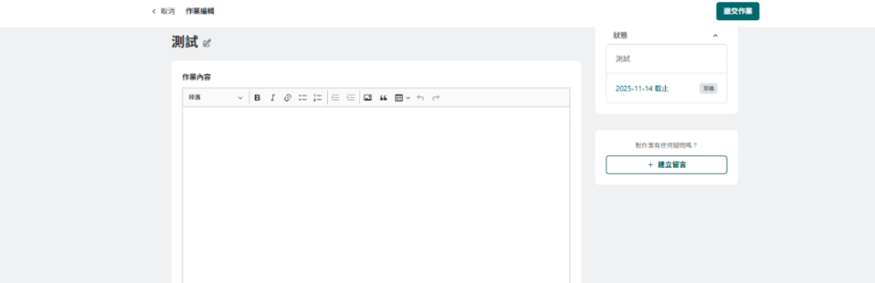 8.撰寫作業時,若中途退出,作業會自動保存成草稿,學員可於之後再接續撰寫作業 。