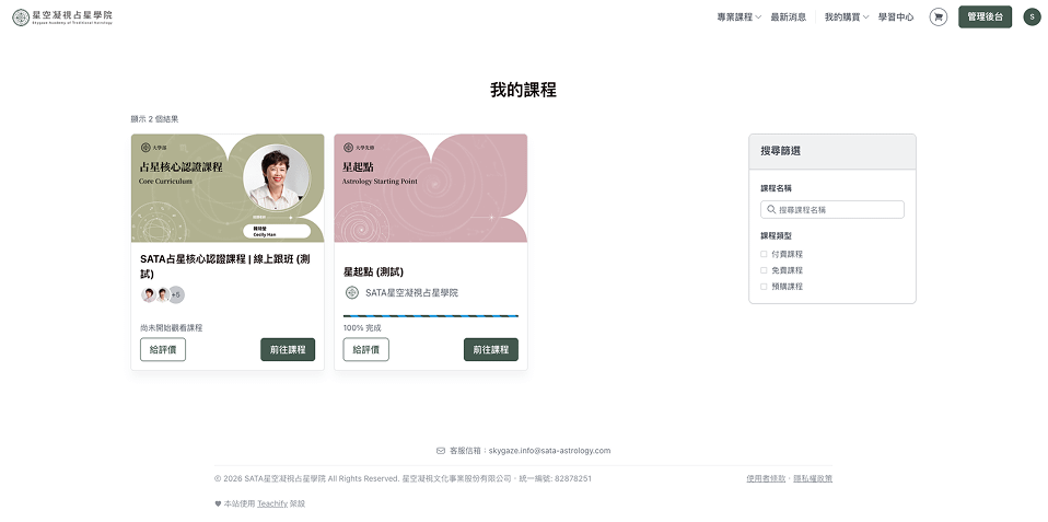 1.學員購課成功後,可以在選單列上找到「我的購買」>「我的課程」或是「學習中心」觀看購買的課程