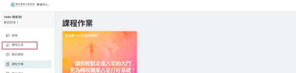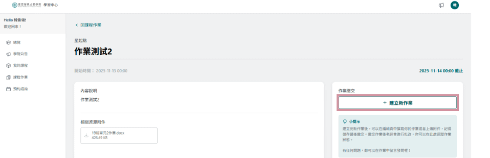 5.「課程作業」皆需在「學習中心」內自行找到該課程之作業。