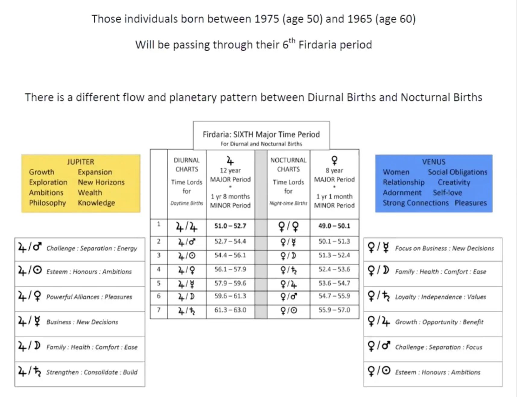 日間盤的人將迎來由木星掌管的 12 年。Joy 老師說,人或許真的要活到 50 歲,才能真正形成屬於自己的人生哲學。無論是宗教信仰、靈性探索,還是對環境與世界的看法,這段時間你會將過去半世紀的經驗整合成一套智慧 。