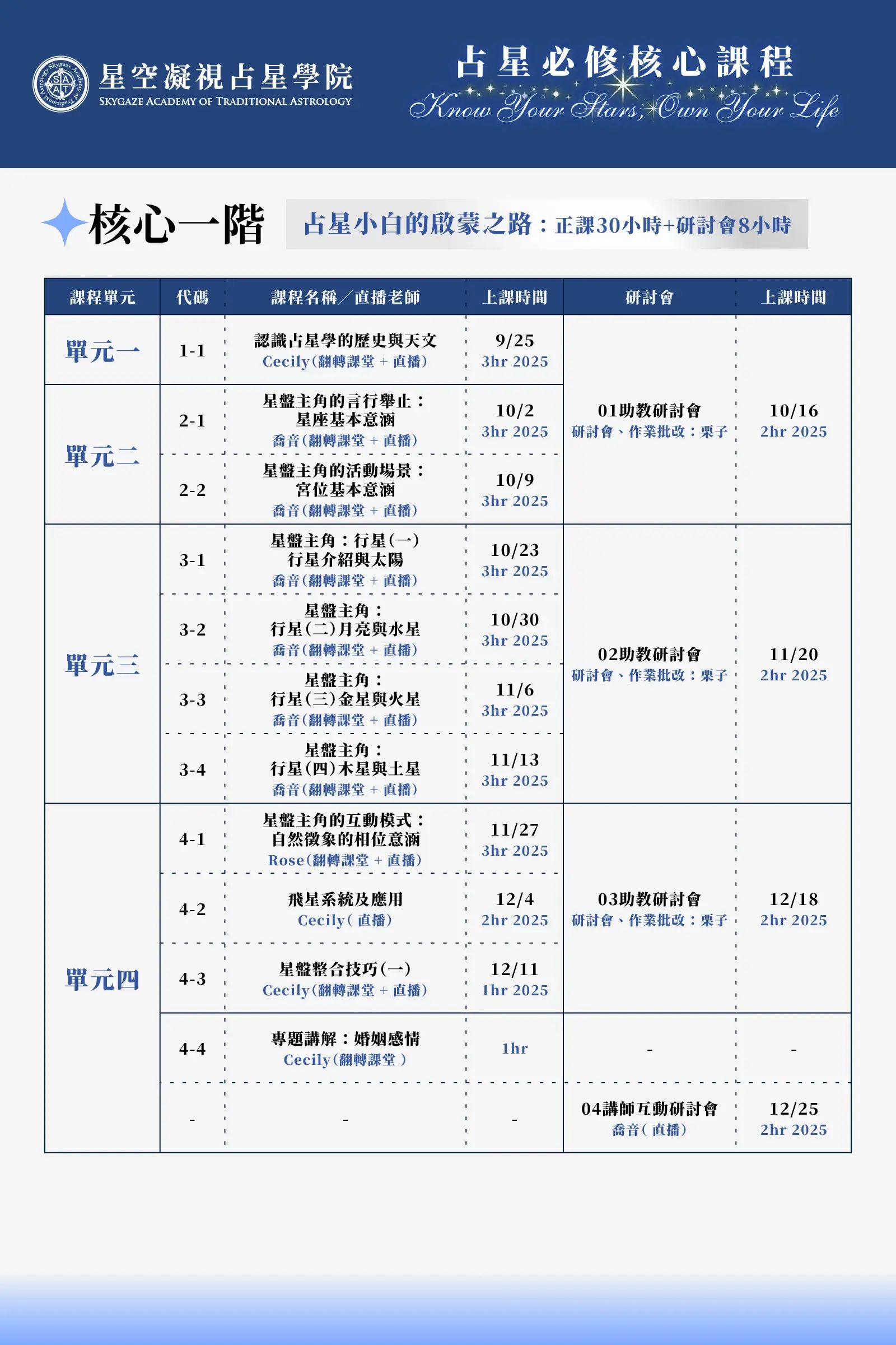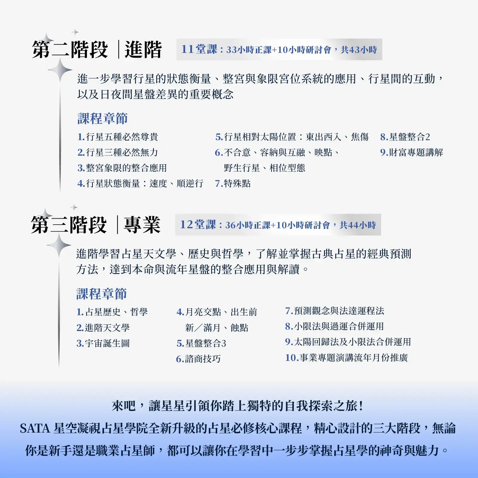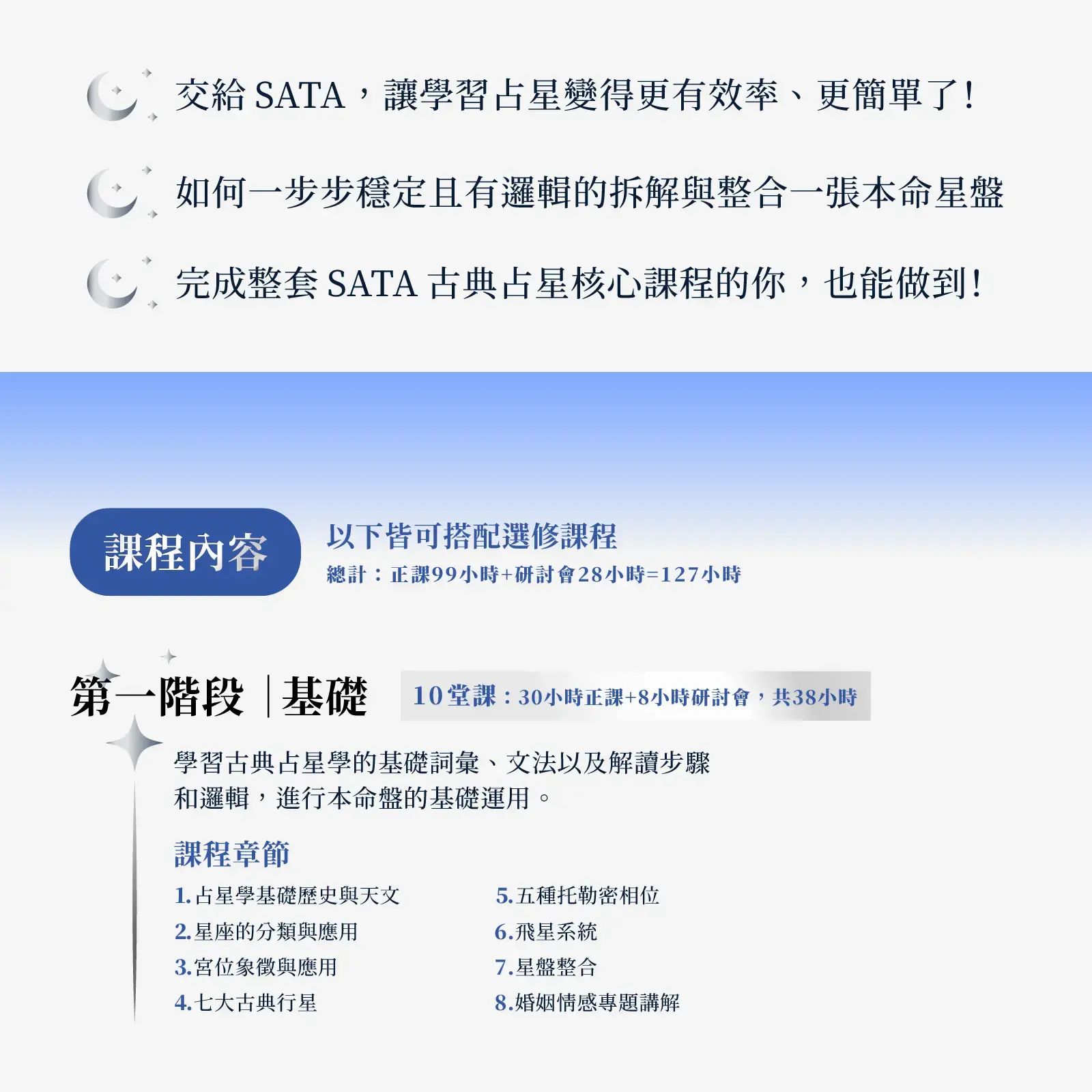 SATA古典占星核心課程課表|三階段完整學習路徑
