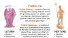 - 海王星(Neptune): 象徵理想主義、幻象、夢境,以及結構的消融。其符號三叉戟對應印度神話中的濕婆(Shiva),集創造者、保存者與毀滅者於一身。在現代占星中,它也代表殉道者、英雄或救贖者。