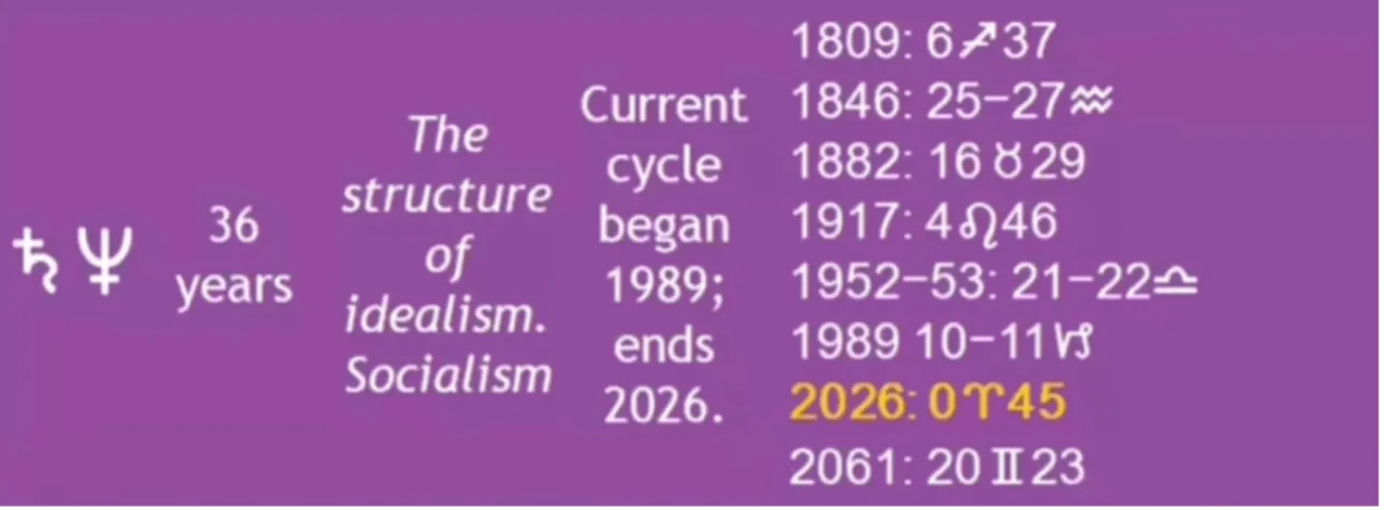 土星與海王星的合相週期大約為36至37年。上一次它們的合相發生在1989年,那是一個世界格局劇變的年份。而這一次的特殊之處在於,它們將在牡羊座合相。 Mari Garcia老師指出,土星與海王星在牡羊座羊座合相的情況極為罕見,上一次發生已是數百年前,當時海王星甚至尚未被人類發現。這意味著,這將是海王星進入人類意識範疇後,首次在黃道第一宮與土星攜手。這預示著一個全新的開始,一個關於個人與集體命運的重大轉折。